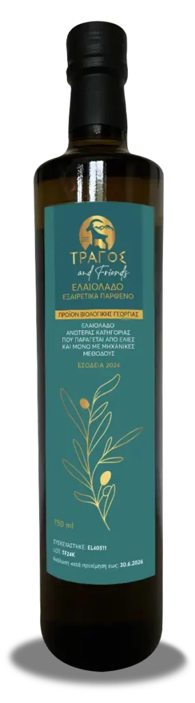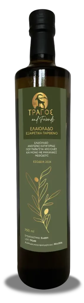 Εξαιρετικό παρθένο ελαιόλαδο «ΤΡΑΓΟΣ and Friends» (Συσκευασία: φιάλη 750ml και τενεκές λευκοσιδήρου 3 λίτρων)